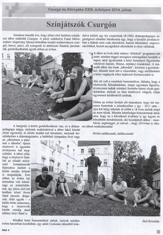 Immár hetedik éve, hogy július második hetében újra színjátszó tábor működött Csurgón.
